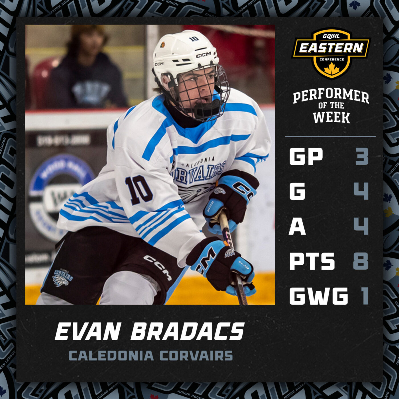 Eastern Conference: Evan Bradacs (Caledonia Corvairs)